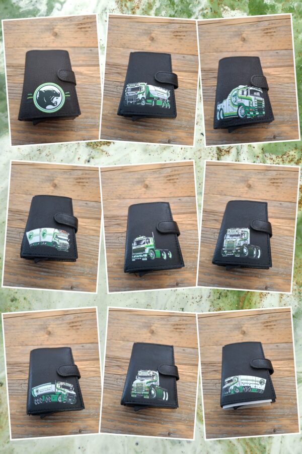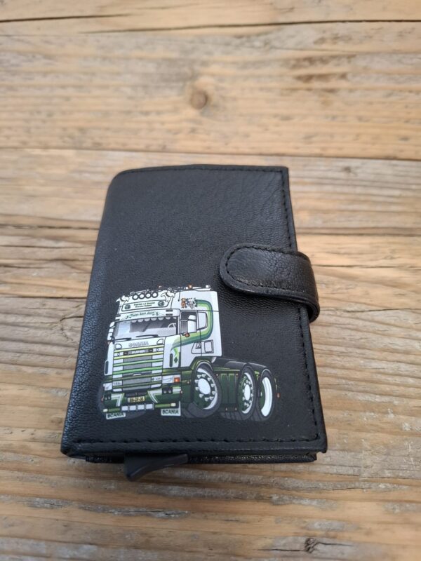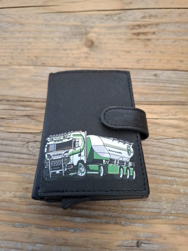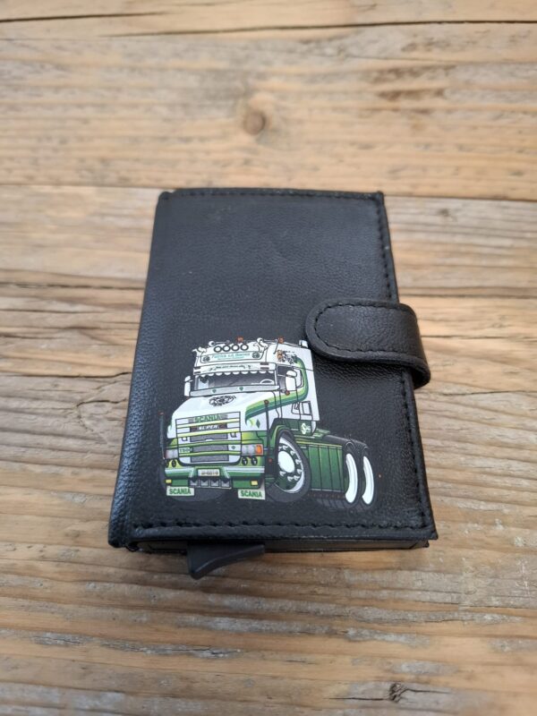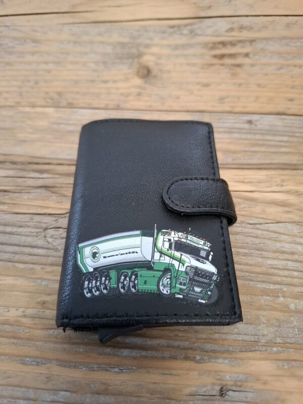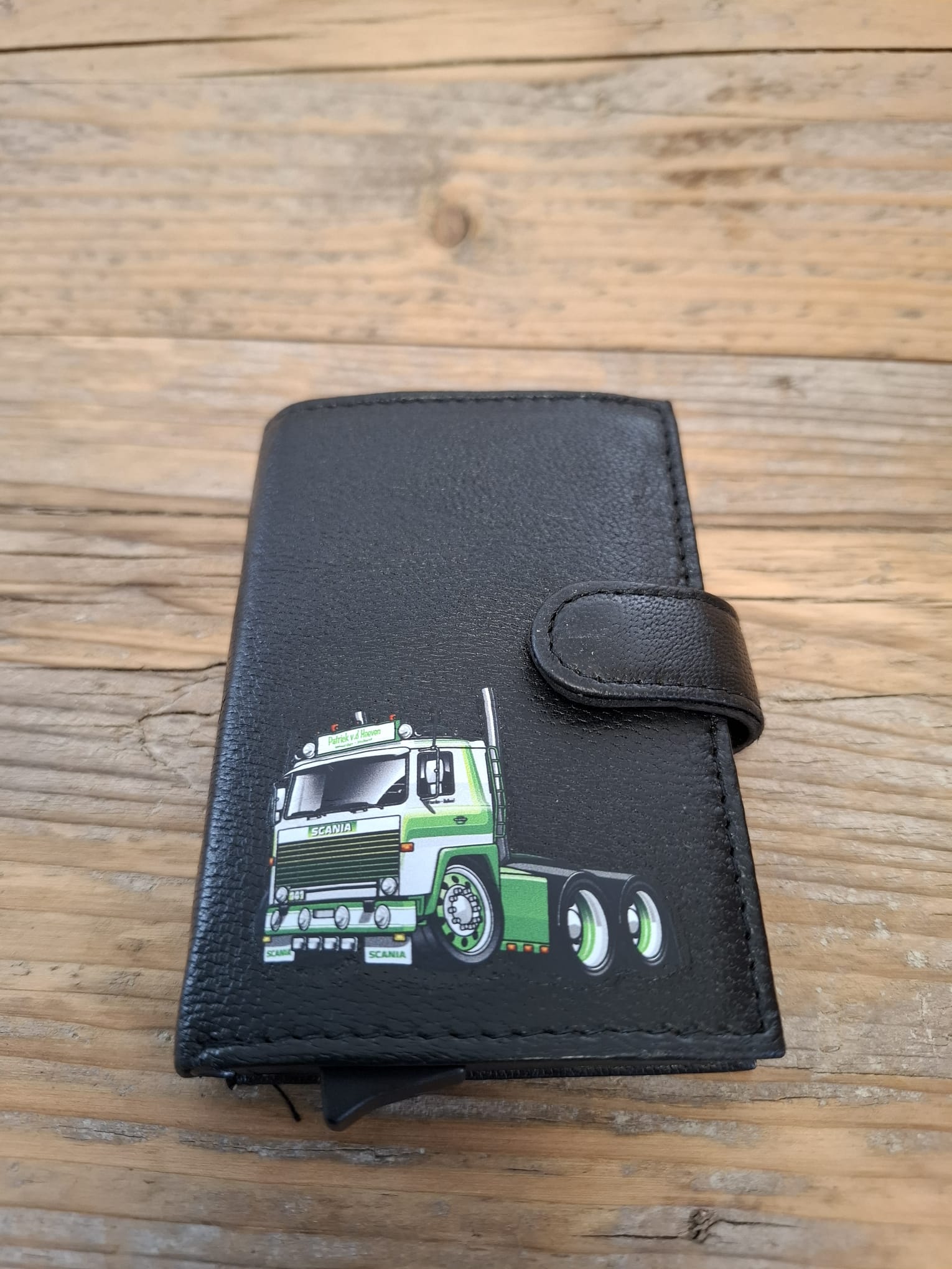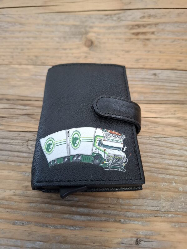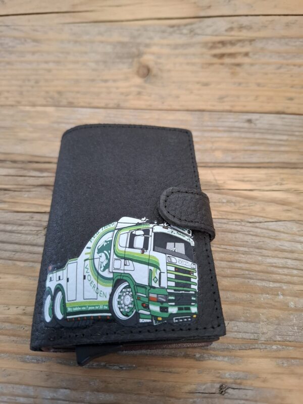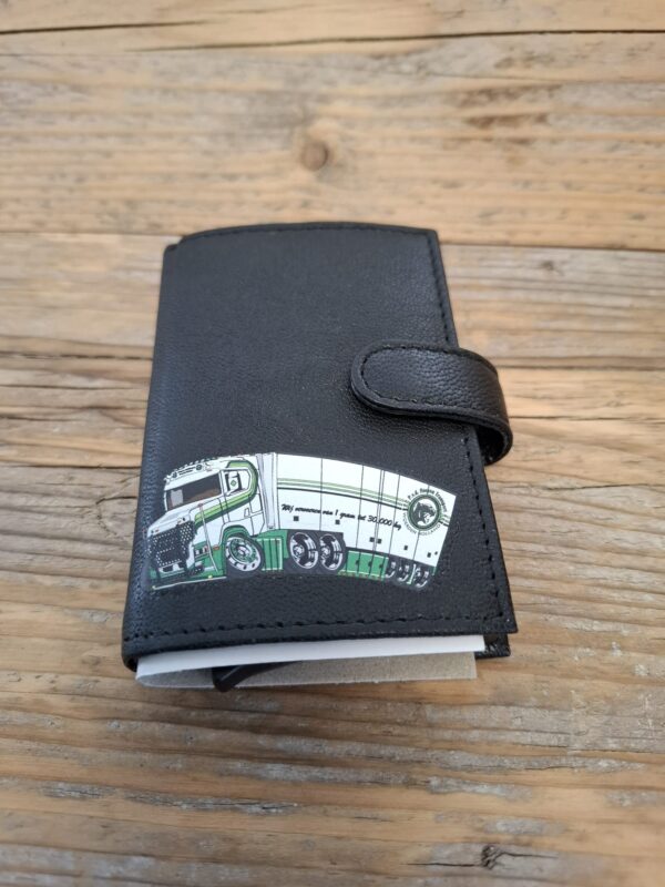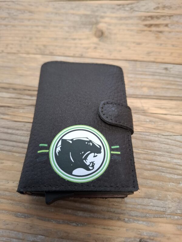 Pasjeshouder voor 7 pasjes met afbeelding van een Cartoon of het PvdH logo.